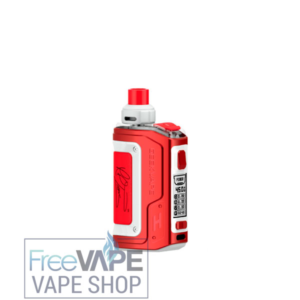 GEEKVAPE H45 POD MOD — вторая версия под мода Aegis Hero от компании GeekVape. По сравнению с первой версией Hero, новинка получила увеличенный до 0.96 дюйма цветной TFT-дисплей, а также вырос объем аккумулятора. Теперь емкость батареи составляет 1400мАч, а для зарядки в передней части девайса размещается порт формата USB Type-C. Максимальный ток заряда составляет до 2А. Под-мод обладает платой с выходной мощностью от 5 до 45 Ватт и с двумя основными режимами: Power и Bypass. Картриджи устройства работают от сменных испарителей серии «B», и два таких сменника с разным сопротивлением идут в комплекте поставки. За регулировку обдува отвечает вращающееся кольцо сверху, а для заправки здесь же предусмотрен порт. Объем резервуара достигает 4мл.