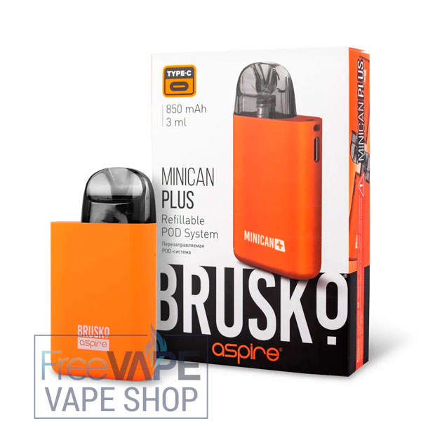 Brusko Minican Plus Starter Kit (850mAh) — стартовый набор класса «всё-в-одном». Совместная разработка российской компании Brusko и китайского гиганта Aspire. Зарядка типа Type-C. Одно из самых компактных и легких устройство для доставки никотина пользователю на текущий момент. Имеет самую лучшую передачу вкуса среди аналогов.